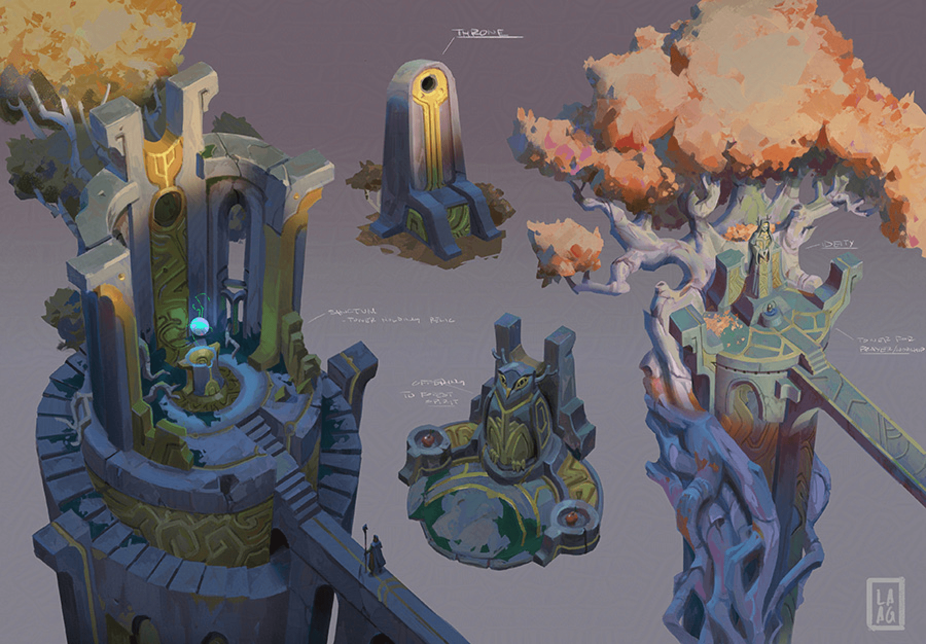 The moods of each environment is a powerful tool to help express the feelings one would experience being in one of these places. What kind of weather constantly cycles through the location is something I ask myself when starting to apply the mood to outdoor environments just as an example. What kind of lighting conveys the right message for this place and does it make sense to place the character here at this time of the narrative. What story do you want to tell in this specific place? Does it invoke a sense of mystery? Or is it a place of empowerment for the character. There are many ways to frame and visualize a place to direct and push the narrative forward. I think being meticulous about the question you ask yourself is the best way to solve those problems.